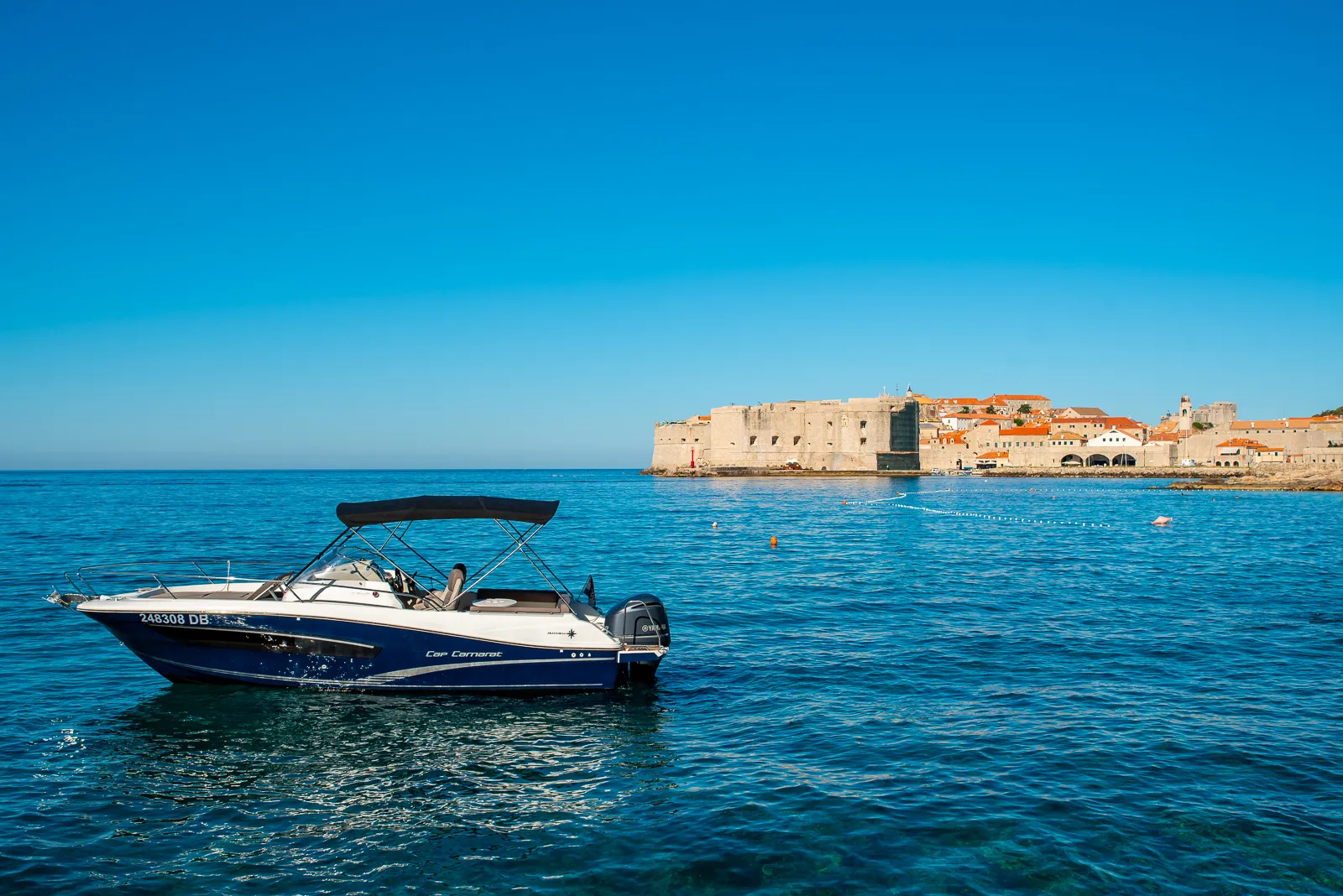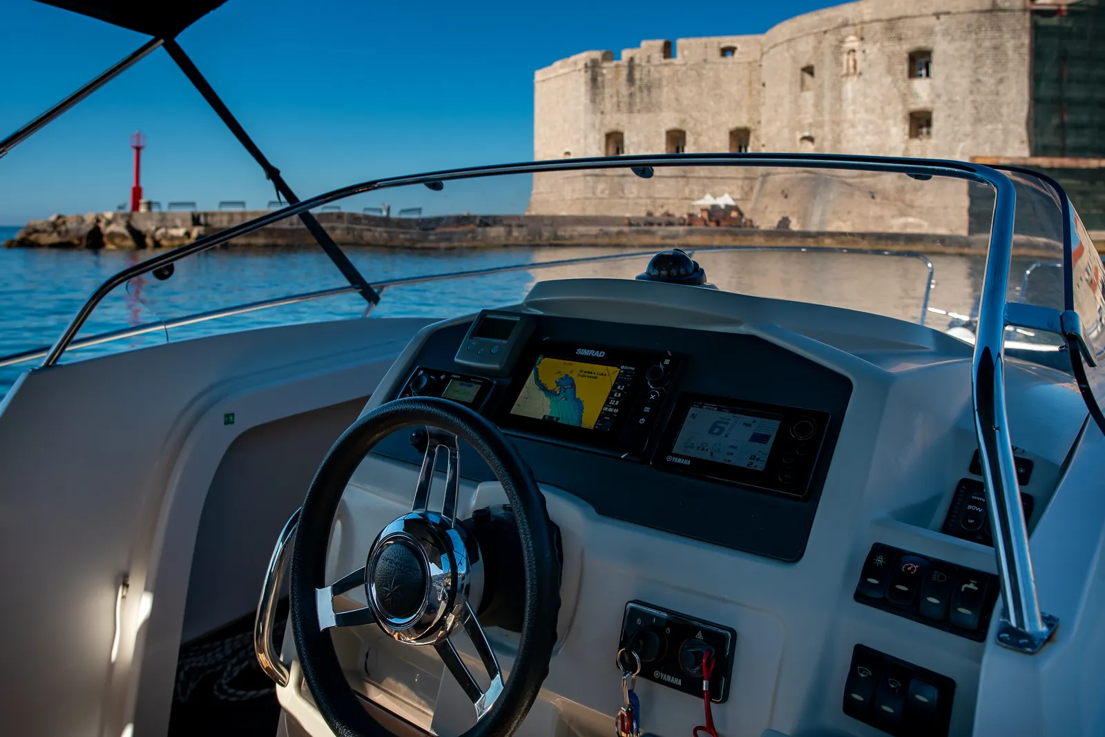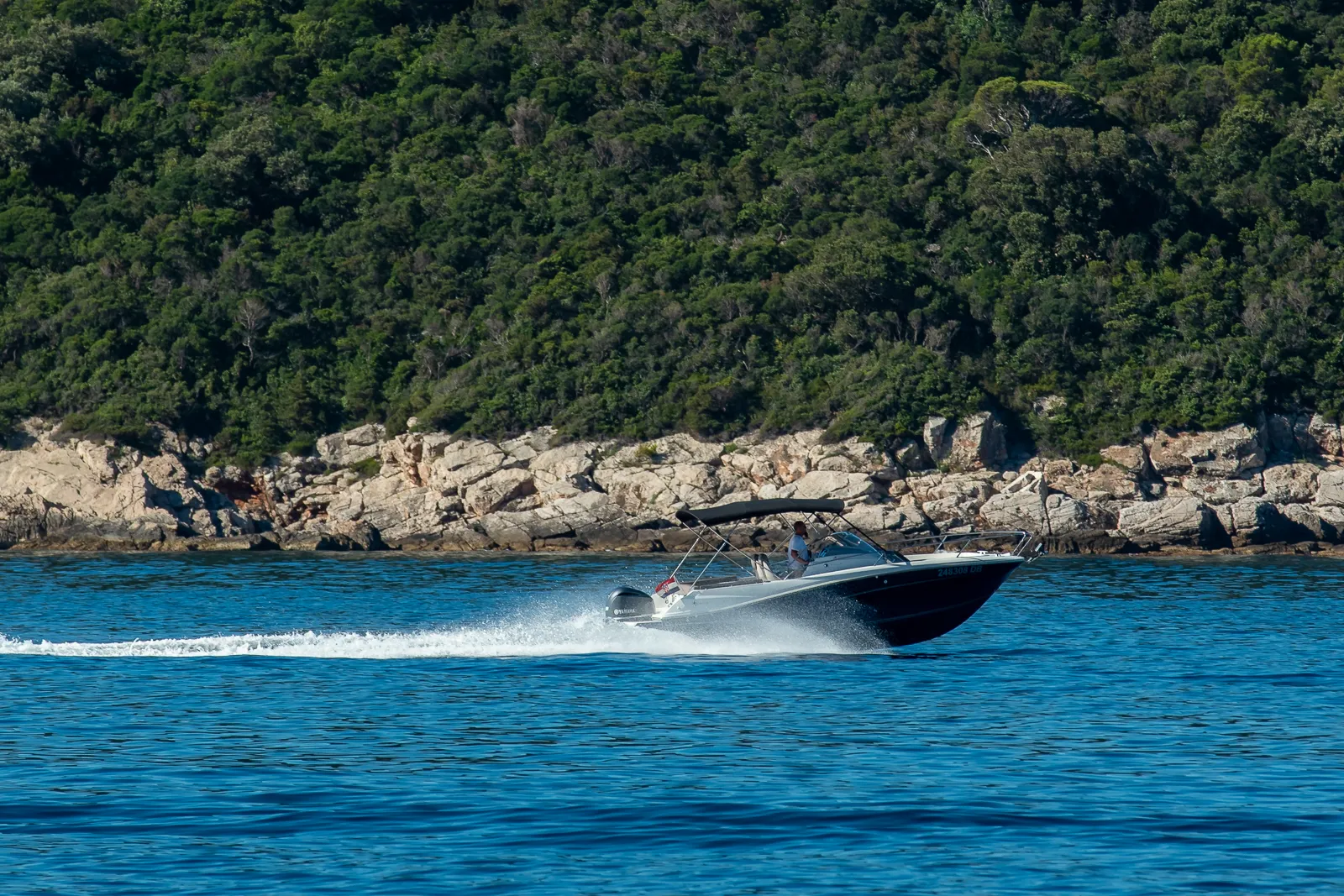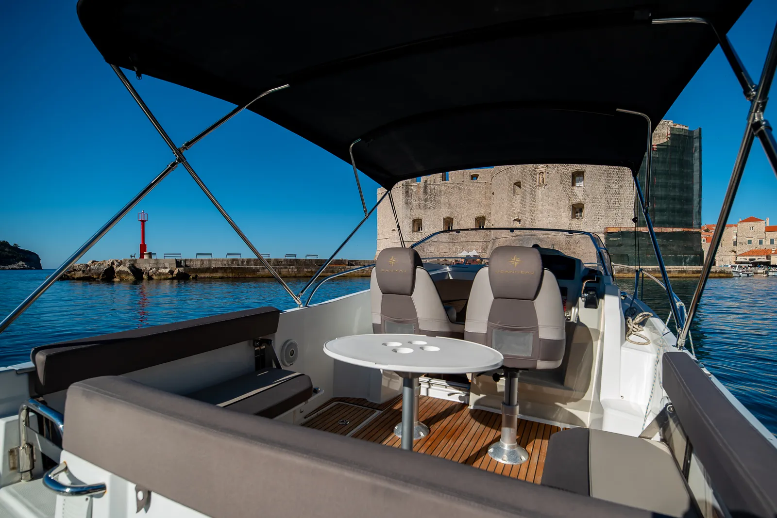 Stylish and swift, this high-speed boat will take you for a truly memorable sea adventure, whenever and wherever you choose. Equipped with a kitchenette, refrigerator, toilet, and shower, cruising at 24 knots, our boat combines high-octane sea travel and laid-back exploration of paradisiacal Croatian hotspots.