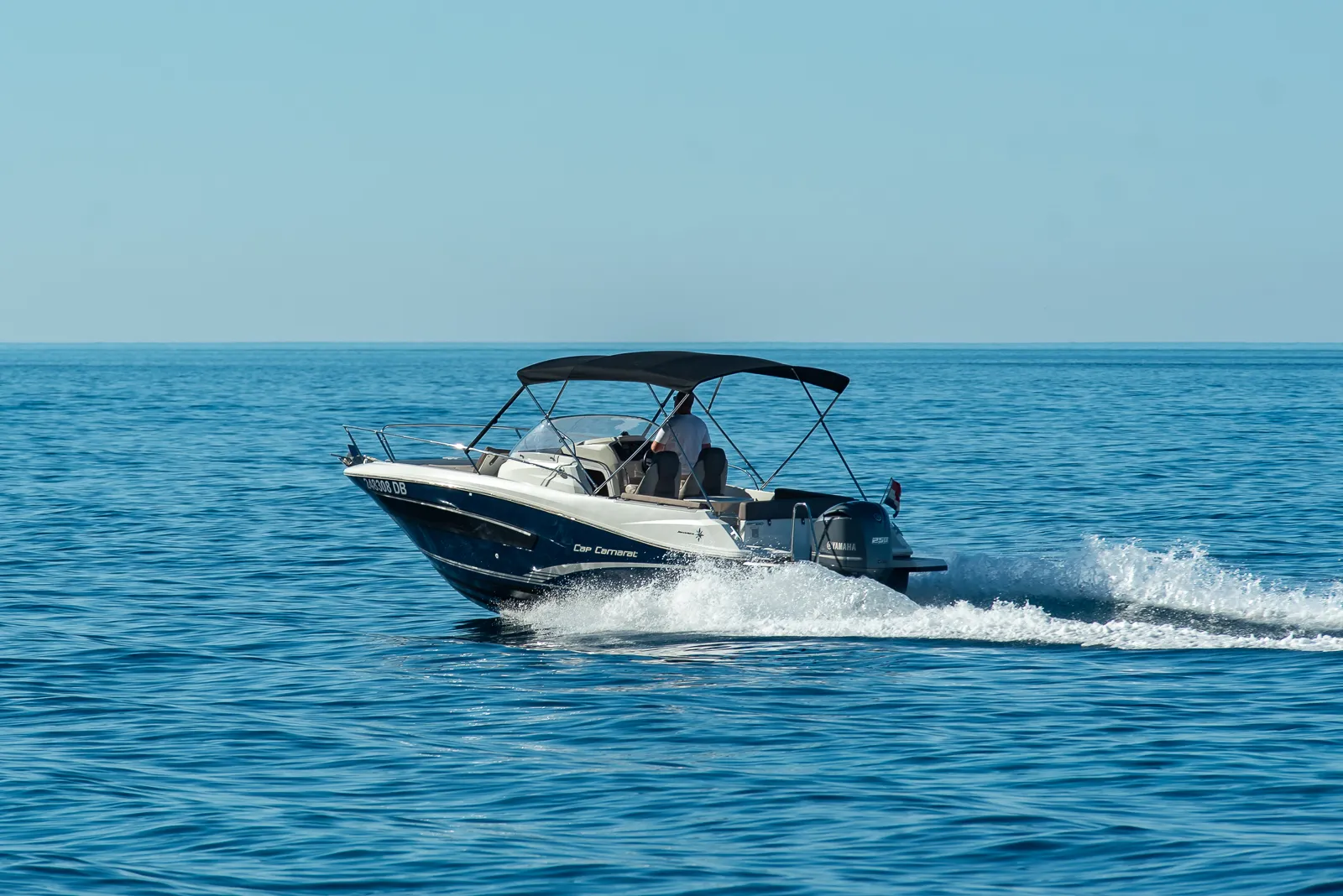 Stylish and swift, this high-speed boat will take you for a truly memorable sea adventure, whenever and wherever you choose. Equipped with a kitchenette, refrigerator, toilet, and shower, cruising at 24 knots, our boat combines high-octane sea travel and laid-back exploration of paradisiacal Croatian hotspots.